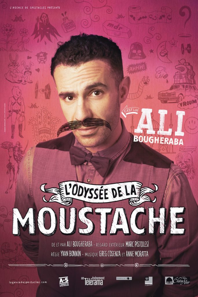 Un test, style « papa il a réponse à tout ». Faux, papa, il a des lacunes alors il va broder…Rapidement, ce récit explicatif va prendre des proportions gigantesques. De simple conte pour enfant il va devenir une épopée fantastique.Un voyage onirique à la rencontre de ses ancêtres les plus illustres, des personnages mythiques de l’enfance, des monstres effrayants mais aussi des préjugés et des qu’en-dira-t-on…Comme « Ali… au pays des merveilles », « l’Odyssée de la Moustache » est un conte urbain, une passerelle entre des mondes, un joli prétexte pour parler de moi, de vous, de nous.
